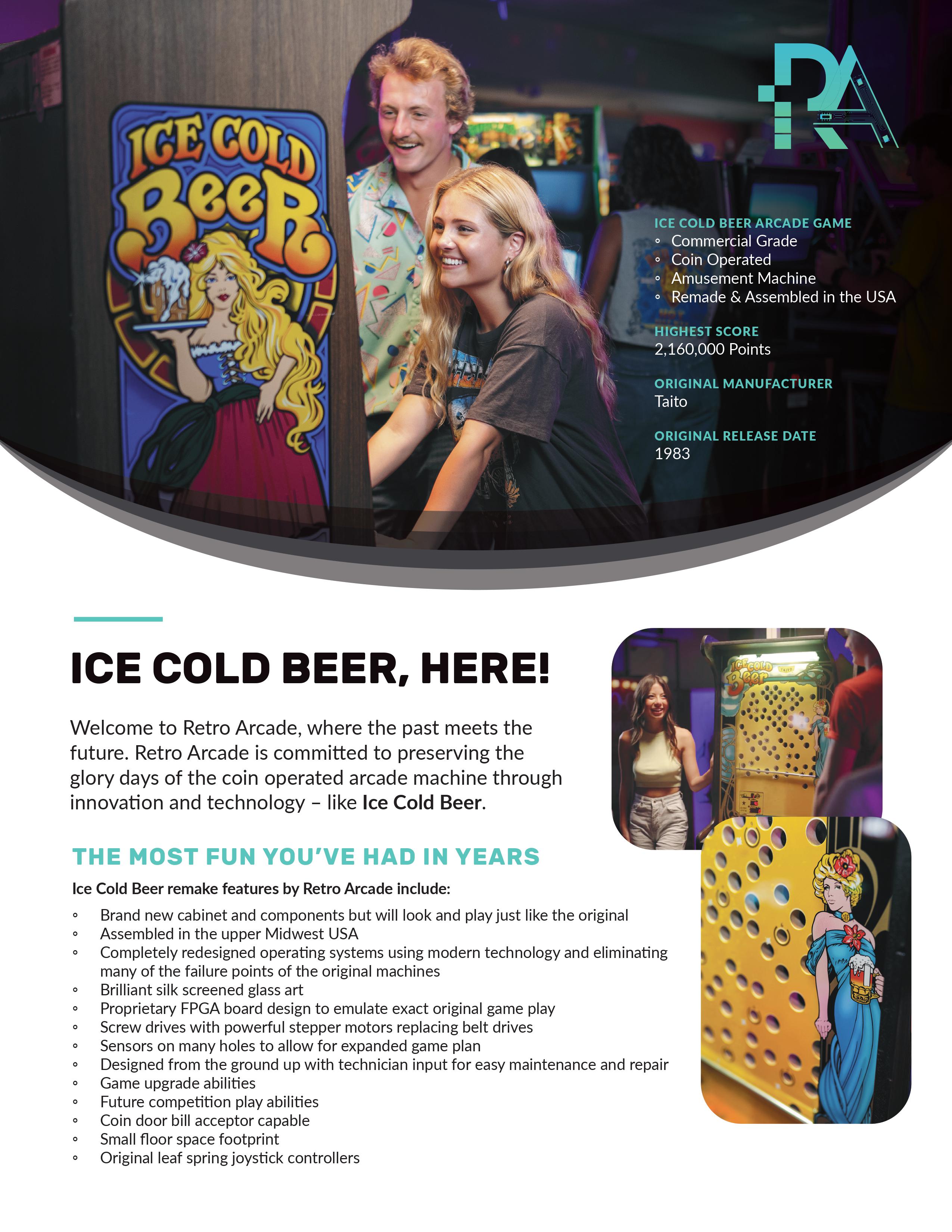 Ice Cold Beer is originally a mechanical arcade game that was released by Taito, a Japanese arcade developer, in 1983. The game is highly sought after by collectors for it’s classic fun and 80’s nastalgia.