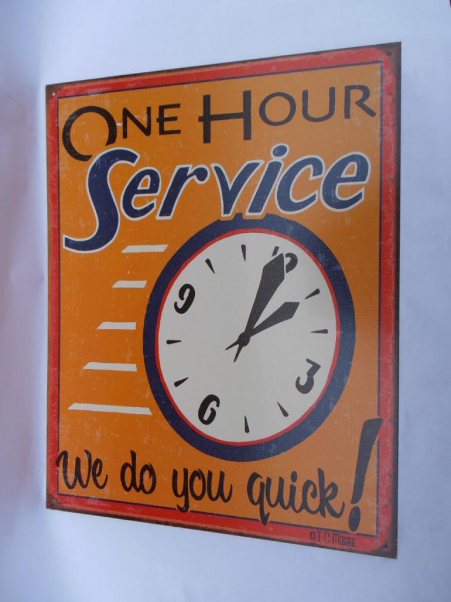 One Hour Service Cool Retro Tin Sign.
