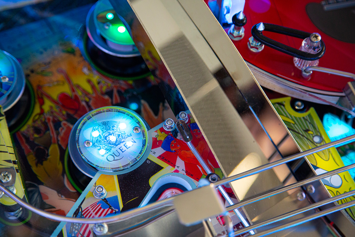 The game features 14 live songs accompanied by call outs by the band, exclusively recorded for the game. Featured also is Brian May’s legendary Red Special guitar, in the shape of an upper playfield where you can lock balls to start the Red Special multiball. Or you can visit the epic Wembley Stadium to lock balls